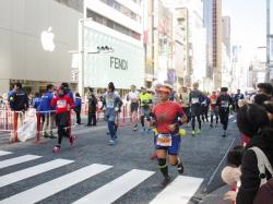 早い時間は、プロの選手と思われるランナーさんで、とにかく早い!カメラを向けてシャッター押すと、もう画面に入ってないくらいでした。両足とも地面についてない、空飛ぶ様な写真になりました。この時に、猫ひろしさんが目の前を走っていたみたいですが、あっという間でカメラで押さえられず・・・。