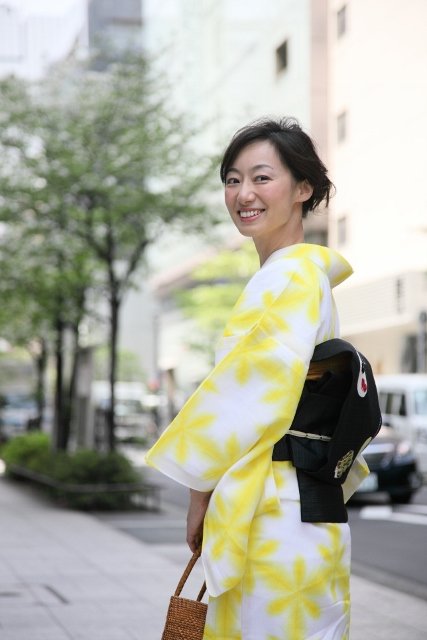 今日は、先日に引き続き“きもの白”がご提案する夏のきもの姿を銀座の街で撮影しました写真をご紹介させて頂きます。