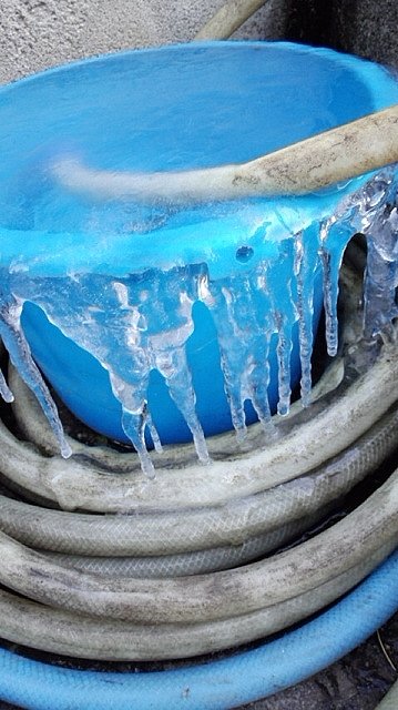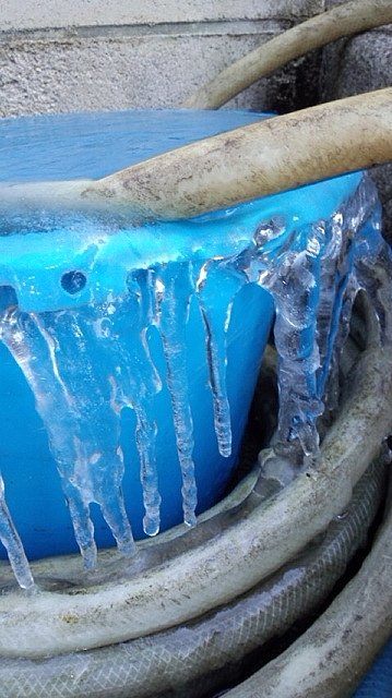 2014.02.05 11:37 白のいろいろ 今日のプーさんぽ!! 立春を迎えて暦の上では春のはずですが、ぐぐぐっと寒いですねぇ・・・。昨日の雪は残っていないようですが、あまりの寒さに所々まだ凍ってますので、足元お気をつけくださいね。 そして、今日のとっても寒ーい朝のお散歩から届いた写真はこれです!!バケツのお水がしっかり凍っています。ホースが入ったまま抜けなくなっていたみたいですよ。バケツからこぼれるお水のつららも寒さを増幅させちゃいますね☆ by kyoko 白のいろいろ | 記事一覧へ