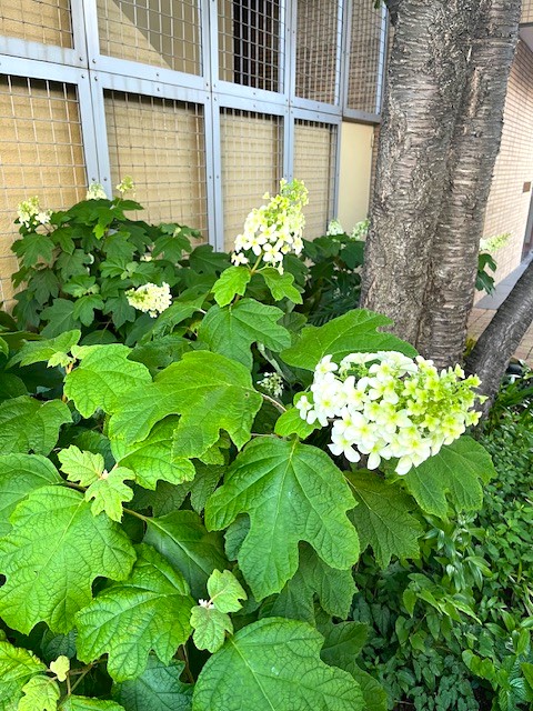 2024.05.18 12:20 白のいろいろ 今日のプーさんぽ!!に負けないぞ!? 気温がぐんぐん上がって熱中症注意の気温になってきています。 まだ5月なのにびっくりですね。 昨日に引き続き、プーさんぽに対抗してパチリ♪してきましたよ。今日は『カシワバアジサイ』です。葉っぱが柏の葉に似ているので、この和名がが付いたそうです。同じ紫陽花でも色々なタイプの子がいて楽しいですね。 by kyoko 白のいろいろ | 記事一覧へ