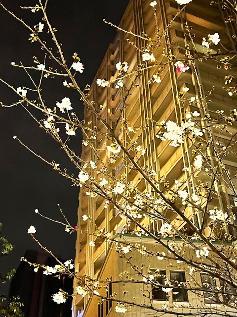 プーさん店長さんが、閉店後に京橋の桜の写真をパチリしてきてくれました。お花見をしている家族やグループもいて、桜は1部咲きくらいですが、賑やかだったようですよ。