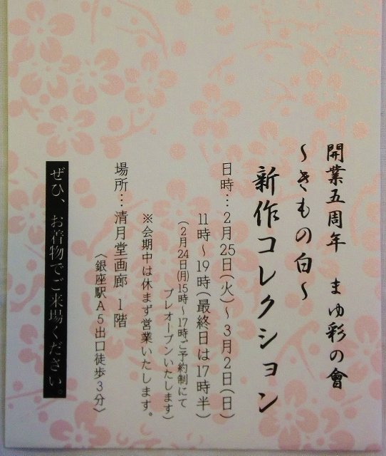 清月堂画廊にて『開業5周年 まゆ彩の會 ~きもの白~新作コレクション』を開催させて頂きます!