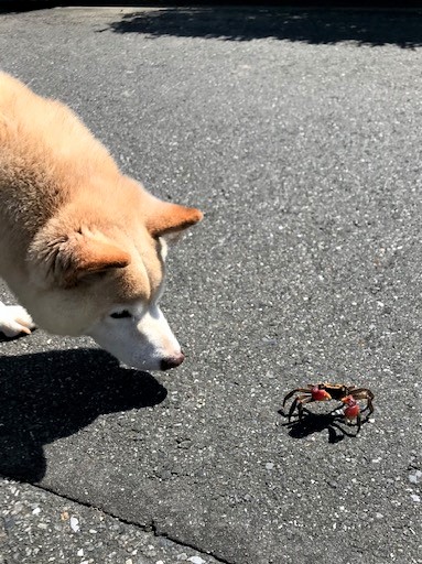 2020.07.04 11:25 白のいろいろ 今日のプーさんぽ!! 雨が降っても、湿度高くてムシムシでも、プーさん店長さんとりきちゃん、ぎんちゃんはお散歩に出かけますよ♪ 先日のお散歩で、カニさんに遭遇したそうです。 ぎんちゃんは興味津々でクンクン。このあとカニさんにはさみでお鼻をツンとされてビックリだったみたいです。 by kyoko 白のいろいろ