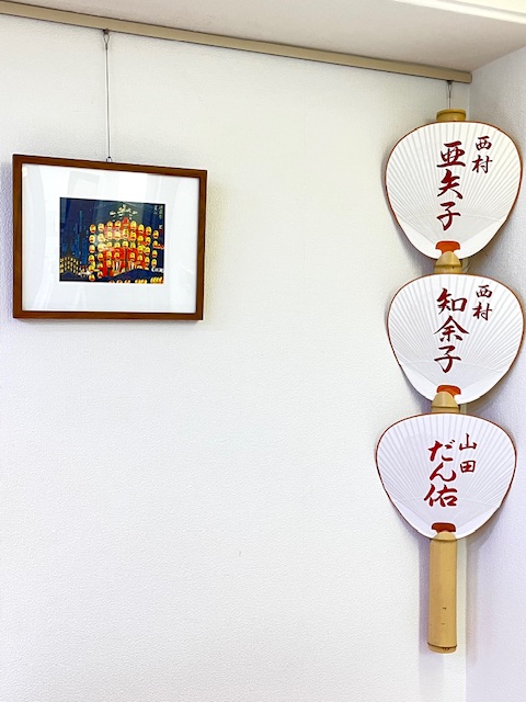 2025.06.01 13:10 白のいろいろ 店内に京都の雰囲気が加わりました!! 今日は気持ちのいい晴れですね。 店内は少し早めに祇園祭の絵をかけてみました。 そして、いつも京都で美味しいお料理をいただいている〝みその〟の大将から芸妓さんや舞妓さんがご挨拶に配るうちわを頂いたので飾ってみました。ちょっと京都っぽくなりましたでしょうか? by kyoko 白のいろいろ