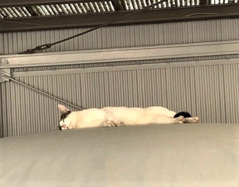 2019.05.27 12:58 白のいろいろ 今日のプーさんぽ!! 真夏日続きますねぇ~。日影に入れば少しは楽なのですが、ふりそそぐ陽射しが、真夏のような強さにビックリしてしまいます。 プーさん店長さんとりきちゃん、ぎんちゃんのお散歩も真夏を前に暑さとの戦いになってきているようです。そして今日届いた写真は『にゃんこちゃん』です。 車の上で、少しバテ気味に寝てますね。プーさん店長さんたちが近づくと、その気配で目を覚ましたみたいです♪ by kyoko 白のいろいろ
