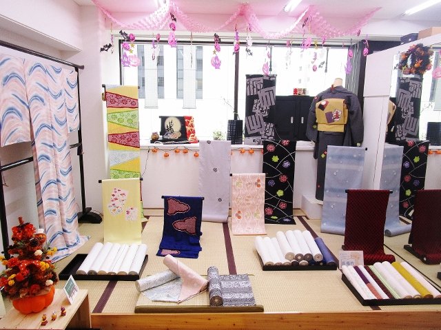 お店の中が、カラフルですよ。ハロウィンムードになった“きもの白”に遊びにいらしてくださいね♪
