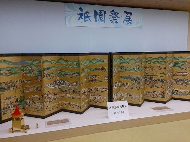 次に、祇園祭と言えば屏風!祇園祭の別名は屏風祭りと言われるくらいですからね。洛中洛外図の屏風をパチリ。