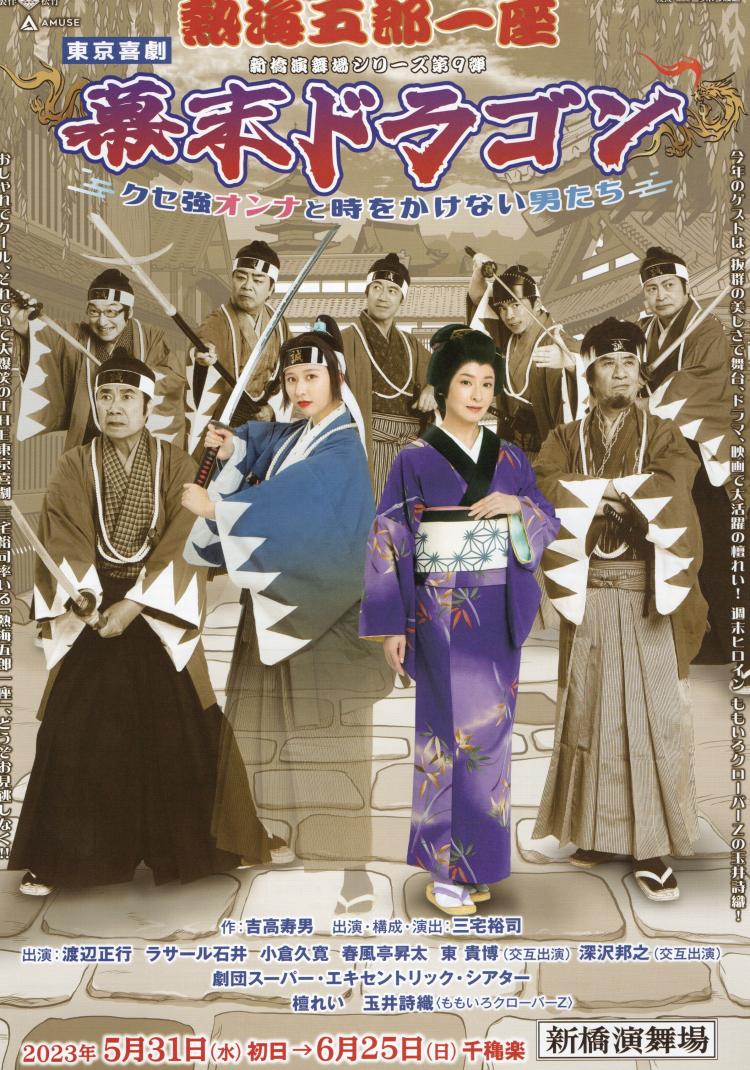 2023.06.12 14:04 白のいろいろ 新橋演舞場にお芝居を観にお出かけしませんか? 現在、新橋演舞場では東京喜劇『熱海五郎一座 幕末ドラゴン~クセ強オンナと時代をかけない男たち~』が上演中です。 存続の危機のシルバー劇団のメンバーが幕末へタイムスリップしちゃう爆笑サバイバル東京喜劇のようです。いっぱい笑って免疫力アップしにお出かけしてみるのは如何でしょうか?6月25日(日)まで公演は続きますよ♪ by kyoko 白のいろいろ