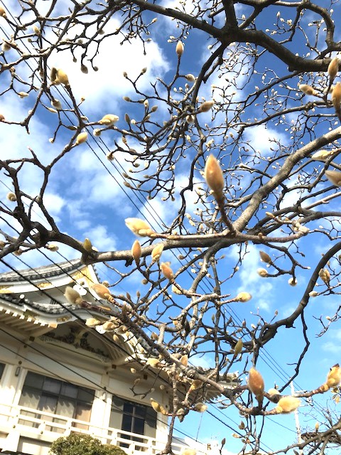 プーさん店長さんとりきちゃんぎんちゃんのお散歩から届いた写真は『木蓮』です。まだぎゅっと固いつぼみですが、ふわふわのこの姿、もこもこコートを着ているみたいで可愛いですよね♪