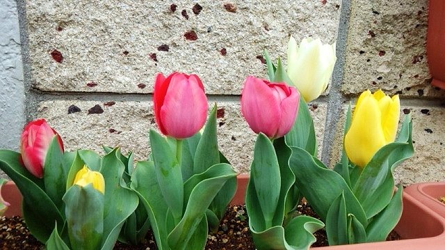 ぽかぽかいいお天気で気持ちのいいお散歩から、今日届いた写真はカラフルなかわいらしいチューリップです!!
