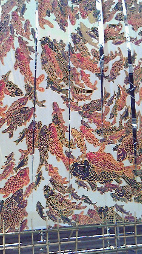2011.07.15 13:51 白のいろいろ 鯉がいっぱいです! 譽田屋源兵衛の前には、創業年数と同じ273匹の鯉が泳ぐたれ幕が!! 今年1匹金色の鯉が足されて、3匹の金の鯉がいます。 3匹見つけられると、幸福が訪れるそうですよ。 おっきすぎて、全体を撮りきれてないですが、探してみてくださいね。 白のいろいろ