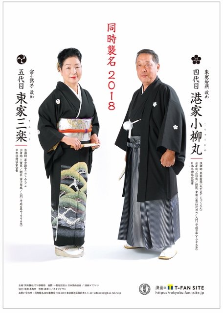 富士路子さんは日本浪曲協会会長、東家若燕さんは同協会理事の要職を勤めながら、芸の精進を重ねられ、浪曲界の諸先輩や関係各位の賛同を得て浪曲界の大名跡であり、お二人にとって所縁のお名前を襲名する運びとなったそうです。