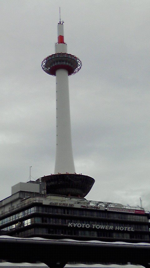 でも、なんとか無事に京都到着で、やっぱり京都タワーをパチリ。どんより空をバックて、ちょっと淋しそうな感じがしますね。