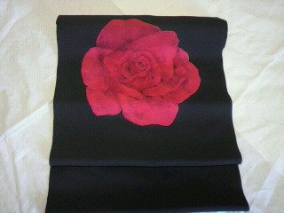 以前にご紹介した牡丹の帯と同じ染屋さんの物で、こちらもろうけつ染めで大胆に薔薇一輪が描かれています。