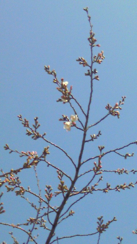 日の当たる所は、高いところばかりなので、見つけた桜の花はかなり遠くて、携帯のカメラでズームアップしたのですが、かなり小さ目です。