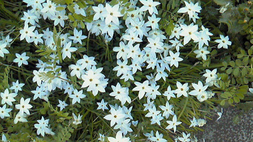 2011.04.07 19:37 白のいろいろ 春みーつけた!! by プーさんぽ 今日は、気温もぐーっと上がって春満開って感じでしたね。 そして、桜も各地で満開です。今日も店長がりきちゃん、ぎんちゃんとのお散歩中にもこもこに咲いている桜をパチリです。 お花がぎゅーとつまっている感じが、かわいらしいです。 綺麗な桜を見ながらのお散歩は気持ちいですよね。 私が、地元で見つけたお星さまみたいなお花もご紹介します!写真では白いお花ですが、ふちは薄い水色なんですよ。このお花はハナニラというお花のようです。葉をちぎるとニラの匂いがするそうです。でも、このお花を見つけた時には知らずに、くんくんと出来てないので、確認できてないのが残念です。 白のいろいろ