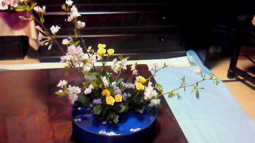 2011.04.16 23:57 白のいろいろ 桜を生けてみました!! 今日はお花のお稽古に行ってきました!! 町中で見かける桜の木は葉桜になってしまいましたが、ソメイヨシノが今日の花材だったので、我が家では桜が満開です。 嵯峨御流では、こういった水盤に生ける物を盛花と呼んでいて、嵯峨天皇ゆかりの大沢池(京都大覚寺にあります)の配置(天神島、菊が島、庭湖石の二島一石)を規範としているんですよ。今日は、盛花の中の後盛体という花態で生けたんですよ。 ポイントは、前方の水面の美しさとお花のバランスですね。 白のいろいろ