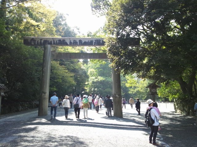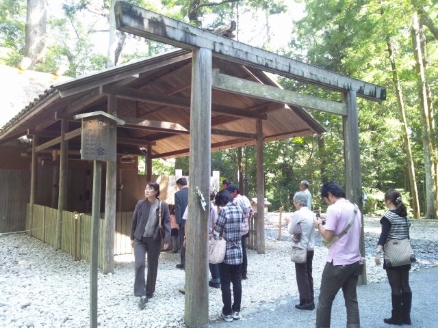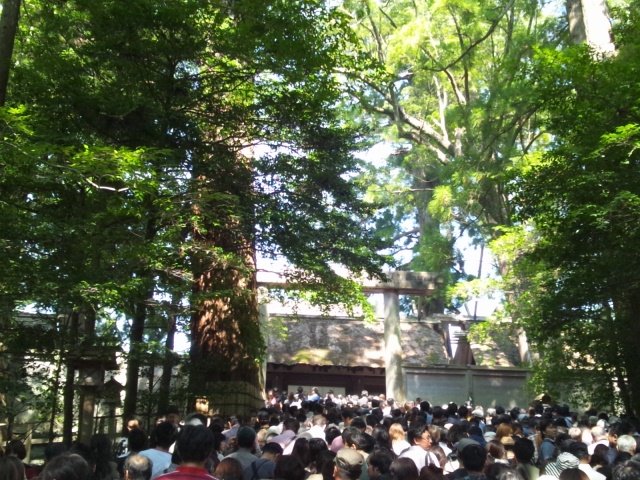 2011.10.09 18:51 白のいろいろ 伊勢神宮は続く!!内宮編 伊勢神宮の中心部!?である皇大神宮(こうたいじんぐう)又は内宮(ないくう)に到着しました。ここは、皆様ご存知の通り、天照大神をおまつりしている所です。 まずは、内宮についての案内を見つけたのでパチリ!詳しい説明は、画像をクリックして大きくして読んでみて下さいね。 そして、宇治橋からの素敵な眺めをパチリ! 水はキラキラ、木々は青々していて、とても気持ちがよかったです。 御正宮(ごしょうぐう)に向かう途中の第二鳥居をパチリ。こちらも、外宮と同じくマイナスイオンとずっと生きてきた杉さん達のパワーがいっぱいです。 そして、とうとう到着しました御正宮!!と思ったら、連休中という事もあって、ものすごい人、人、人・・・。石段を一段ずつ並んで上っていきましたよ。10分位並んでいた気がします。そして、とうとう目の前に!そうしたら、なんと、かかっている布がふわっとめくれて、中が見えました!!本当は二拝二拍手一拝をしなくてはいけないのですが、思わず凝視しちゃいました。 by kyoko 白のいろいろ