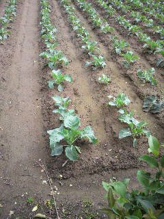 2011.10.16 18:55 白のいろいろ 今日のプーさんぽ!! 今日のプーさんぽの写真は、いつものお散歩道にある畑です。 最近植えられたらしい、ブロッコリーくんとカリフラワーさんです。 綺麗に整列していて、どこで切り替わっているのかは、ちょっと分からないのですが、緑の葉っぱが青々と並んでいる感じはいいですよね。 ブロッコリーは、キャベツの変種で、和名はミドリハナヤサイ(緑花椰菜)というそうですよ。そして、皆さんご存知だとは思いますが、普段食べているプチプチはつぼみなんですよ。 白のいろいろ