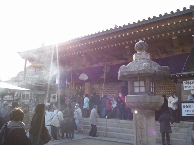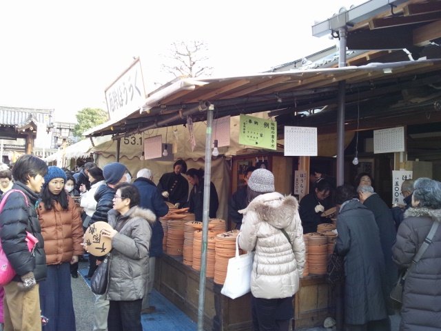 私は、京都から帰る前に節分の行事をしている“壬生寺”に寄ってきました。ここでは、素焼きの炮烙(ほうらく)に家族知人の年齢・性別・願いごとなどを墨書して奉納するという、風習があるそうで、いっぱいほうらくを積んであるお店を見ました。というう事で、ほうらく屋さん!?をパチリです。