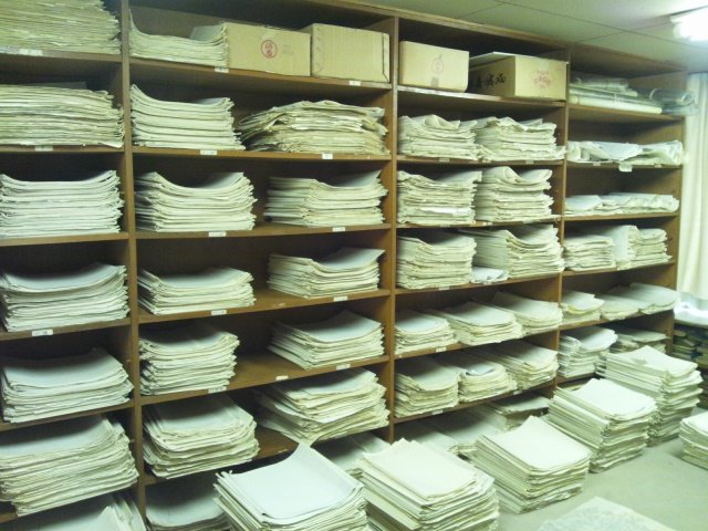 そして、次のお部屋にもいっぱい積まれているものが・・・。なんだかお分かりになりますか?これは、今までコチラのお店で作られてきたお着物などの図案です!!これまた、ワクワク度が半端じゃない!!広げて見せて頂いた昔の色留の図案は、ものすごく繊細で豪華。八掛の柄も衽(おくみ)裏だけではなく、上前すべてにたっぷり描かれちゃうんですよ。