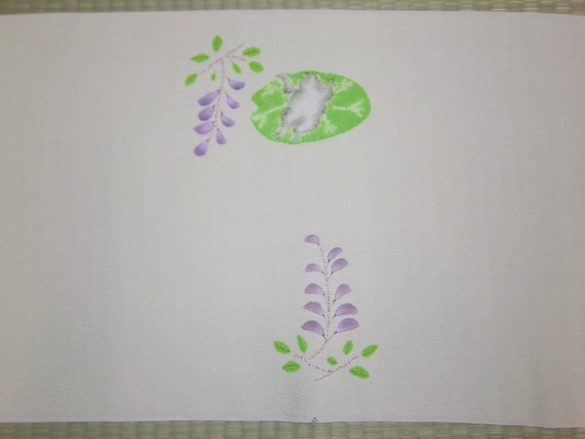 この帯の藤とカエルの組み合わせには意味があるんですよ!!それは『無事(藤)に帰る(かえる)』ダジャレじゃない!!と言って失笑しないでくださいね。締めて頂ける方の無事を祈っているのですから。