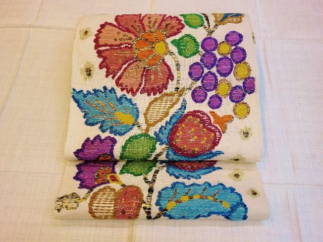 唐花柄だけでなく、ぶどうやイチゴのような模様も織りだされていて、とても可愛らしくPOPな印象です。