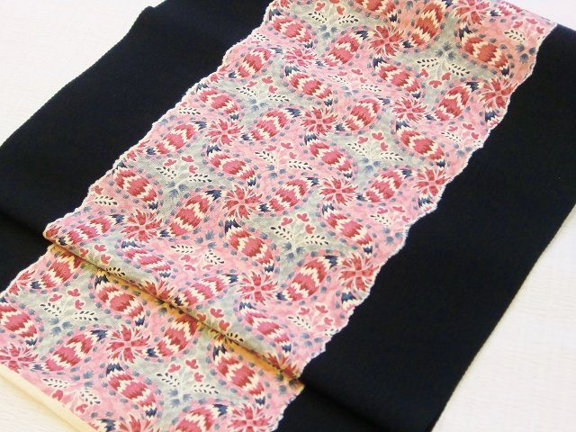 アルザス卍文柄名古屋帯です。この帯は全通柄なので柄位置の心配がなく初心者の方にもとっても締めやすい帯です。両脇に無地部分があるので細かい柄、大柄関係なく色々なお着物に合わせやすく、活躍してくれます。