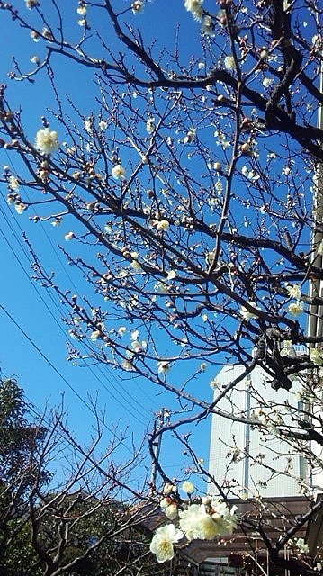 今日のプーさん店長さんとりきちゃん、ぎんちゃんのお散歩からは春の訪れを感じられる梅の花です。