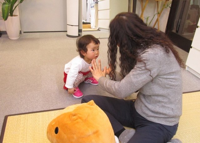 大きな鏡には、小さなお子様は興味津々です。(小学生くらいのお子様の場合は、本を読んだり、宿題などを一緒にしたりさせて頂いてます。)