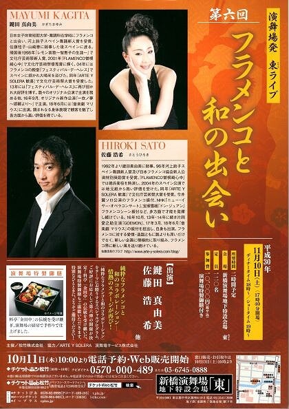 2018.10.14 11:39 白のいろいろ 新橋演舞場発 東ライブに出かけてみませんか? 〝きもの白〟から徒歩5.6分の新橋演舞場は皆さまよくご存じですよね。その地下の食堂東(あずま)で行われてる素敵な公演があることはご存知ですか? 落語やなでしこの踊り(新橋芸者さんの踊りの会)には今まで参加させていただきましたが今回開催されるのは『フラメンコと和の出会い』美味しい特製御膳をいただいた後に始まる、フラメンコの舞台。少し背の低い天井と地下の空間がよりスペインに出かけている様な雰囲気にしてくれますよ♪ プーさん店長さんは只今フラメンコに興味津々。 気が付いたら、お店で着物のままステップを踏んでたりするかもしれませんよ☆ by kyoko 白のいろいろ