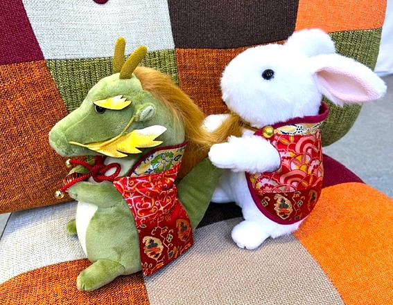 2023.12.03 13:43 白のいろいろ 干支バトンタッチ!! 今年もこの季節がやってまいりました!! 干支マスコットバトンタッチの儀式です。 ちょっと眠そうな辰くんですが、なかなか男前で気に入っています。 来年頑張ってね!という事で今年の兎くんから激励のバトンタッチです。 by kyoko 白のいろいろ