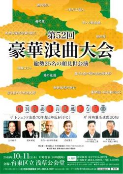 10月11日(木)に浅草公会堂で『第52回浪曲大会』が開催されます!!