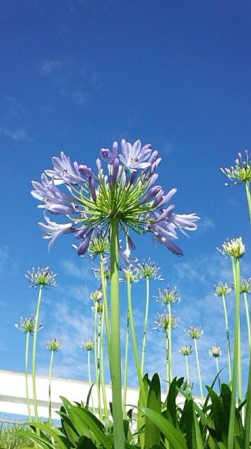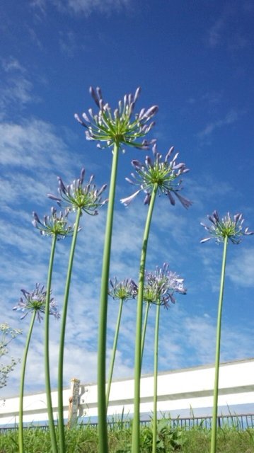 今日届いた写真は、この時期必須!?“アガパンサス”です。青空に向かってすくっと立っているこの姿。毎年見ていますが、さわやかな感じで良いですよね。