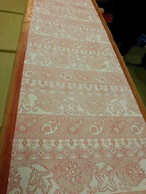 最期の白地に赤いラインで模様を描かれているのは長板中型でのり置きをしたところです。