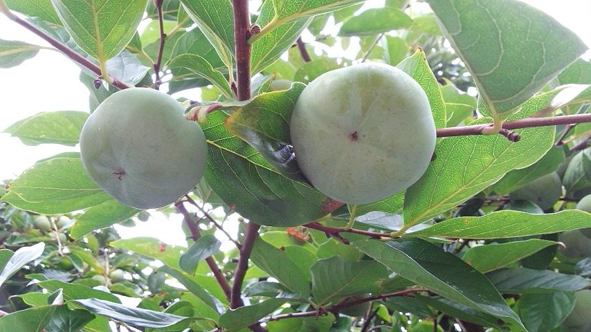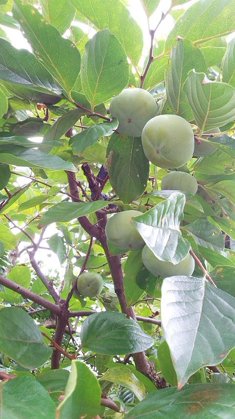 秋の味覚と言えば、柿!?う~ん。まだだいぶ早いようですね。綺麗な緑色の柿さんがいっぱいです。美味しく頂けるようになるには、まだ時間がかかりそうですね。