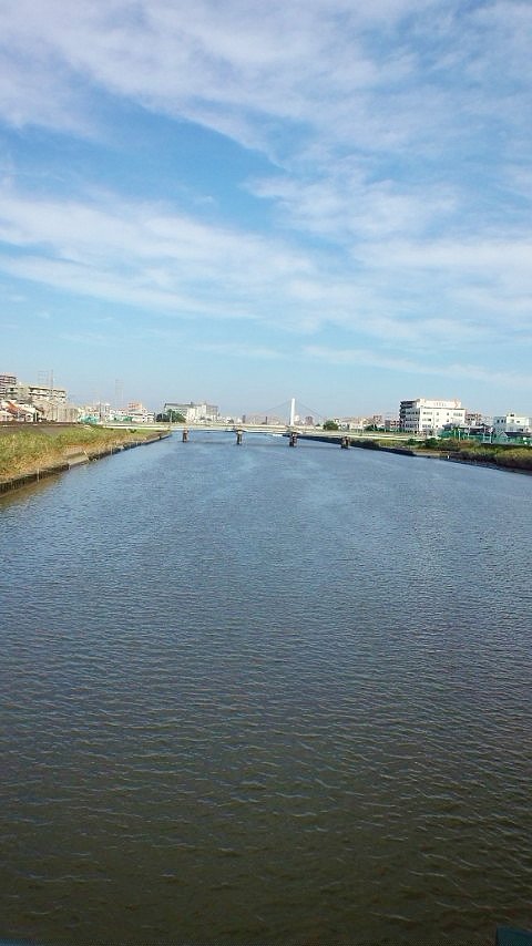 小っちゃい写真だと、ちょっとわかりづらいかもしれませんが、お空は綺麗なブルー!そして、白い雲!!いいお天気になりました。でも、川は昨日の雨のせいか、ちょっとキラキラ度が低めですね。