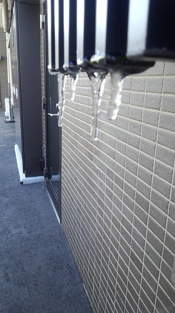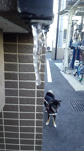 そしたら、なんとお散歩の途中に寒さの象徴!?のつららくんに遭遇してパチリです。