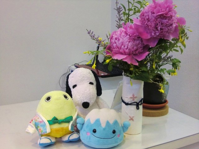 昨日のブログですでに登場済ですが、プーさん店長さんのお誕生日に届いたスヌーピーさんがバルーンの中から出てきて、みんなと一緒に記念撮影です!!