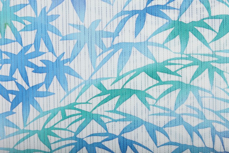 白地に青の濃淡で染め上げられた笹と楓が、とても涼やかで、風に揺れるような心地よさを感じさせてくれます。