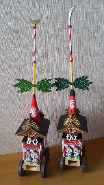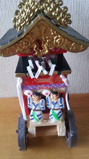 おととしの祇園祭でプー店長さんが月鉾の置き物をゲットして去年のブログに登場させていただきました。そしておととしゲット出来なかった長刀鉾の置き物を去年ゲットし今年は2個のミニミニ鉾が我が家に飾られています。