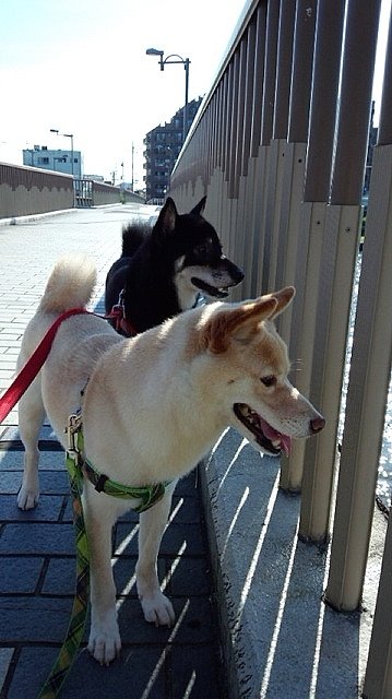 今日のプーさんぽから届いた写真は、その太陽のキラキラを感じて頂ける写真です!!そして、その川を見つめてるりきちゃんとぎんちゃんです!