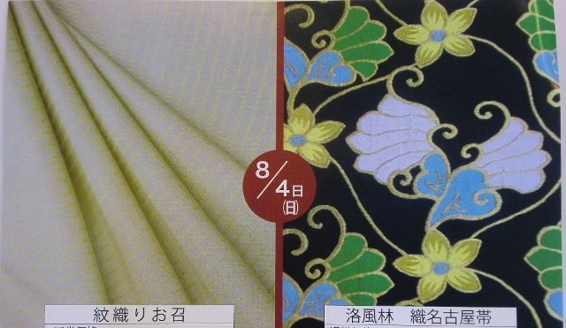 商品はさらっとした着心地の紋お召しと洛風林のマグノリア柄の名古屋帯の二点です。