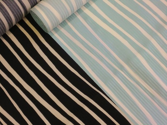 縞の地紋の入った生地に、大胆なよろけ縞!!パッと見ると、ちょっとインパクトありすぎ!?と思われる方もいるかもしれませんが、仕立てあがると、ふっと、体になじんじゃうのがこのお着物の素敵な所です。