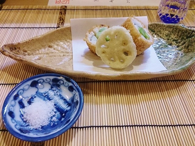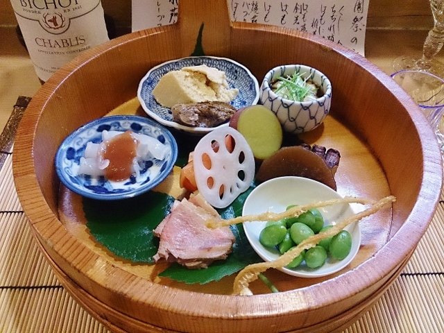 そして、夜のお楽しみは美味しいご飯!はもずくしで皆さんおなかいっぱいです。全部はご紹介できないので、最初のぐじの冷茶碗蒸しと一緒に本日のメニューを!!その中からハモいっぱいのお食事をチラッとご覧くださいね。