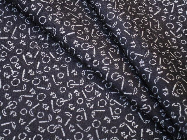 鎌と輪の絵に「ぬ」の文字を合わせて「かまわぬ」と読む判じ絵。 江戸時代元禄の頃、町奴(まちやっこ)達が好んで身につけていたとされ、その後歌舞伎役者の七代目市川団十郎が舞台衣装に用いて、当時の庶民の間で大流行したと言われる「かまわぬ」が江戸小紋になりました☆