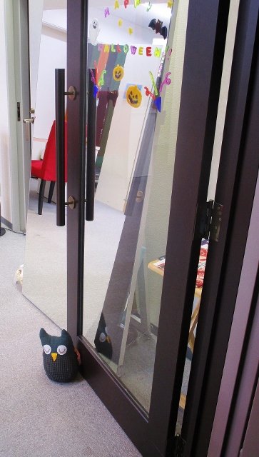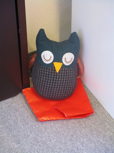 いつでも眠っているふくろうさんの本当のお仕事は、二枚目の写真の様にどしっと座って扉をおさえる事だったはずなのですが・・・。