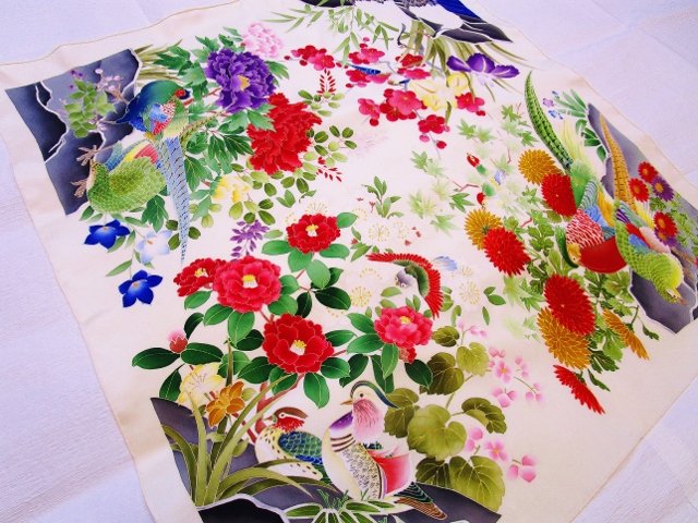 このショール用に別機(べつばた)で織られたしなやかでありながら、ハリのあるとても心地の良い生地に、一流の職人によって京友禅を施した、一点もののショールです。