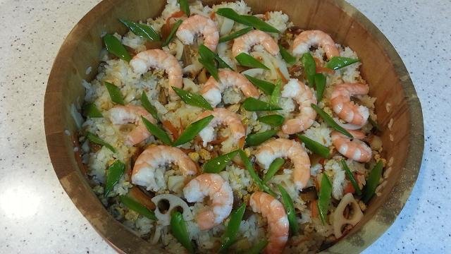 かんぴょう、しいたけ、蓮根なども入っていますが、我が家のちらし寿司はしゃけ缶やかまぼこも入っています。
