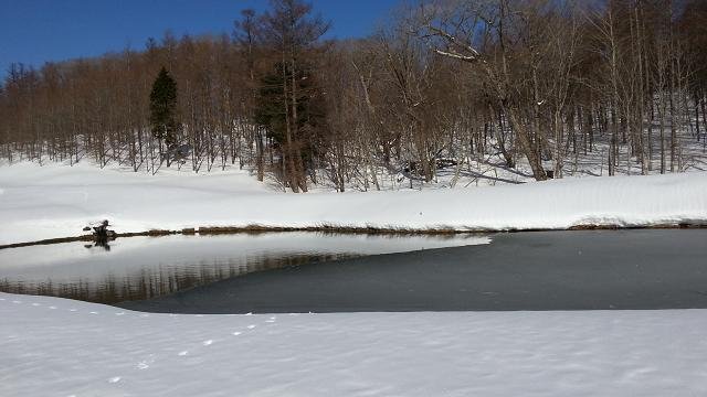 雪もかなり積っていましたから、池も凍りますよね。